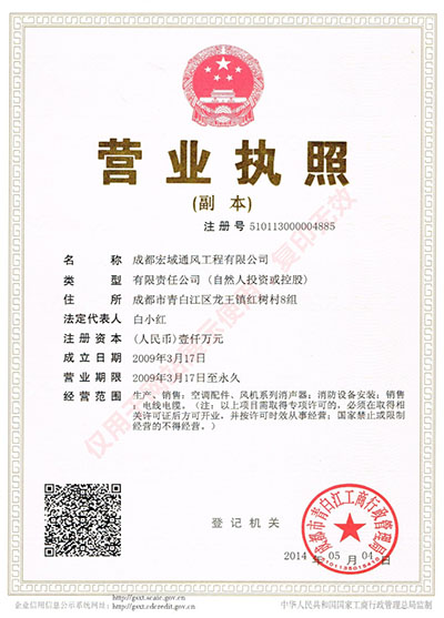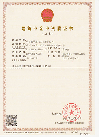 | 宏域通風營業執照 | 宏域通風建筑企業資質證書 |
